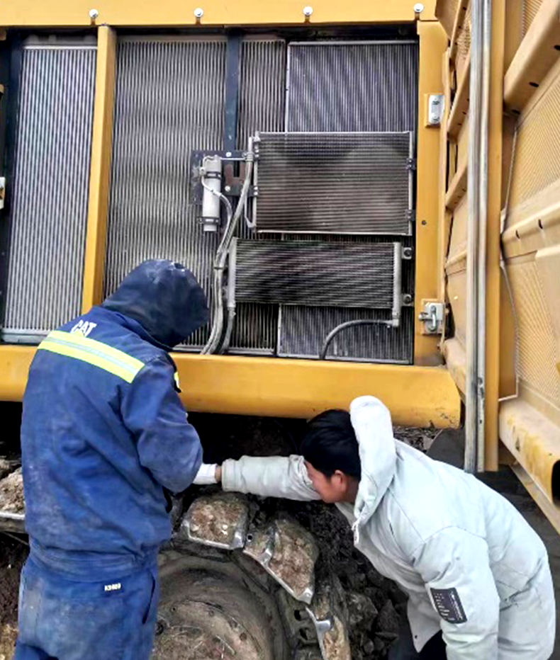 2023年2月初,客户的工程面临着工期紧,任务重且施工环境复杂等情况。“屋漏偏逢连夜雨”。一天,客户的一台Cat 349在施工时水箱被意外撞坏,需要更换。接到客户的紧急报修电话,kaiyun开云机械售后服务团队立即研判决策,考虑到路途遥远的因素,决定让服务人员携带配件,连夜坐车,历经两天两夜赶到现场,第一时间帮助客户解决了问题,没有耽误客户的工期进度。
