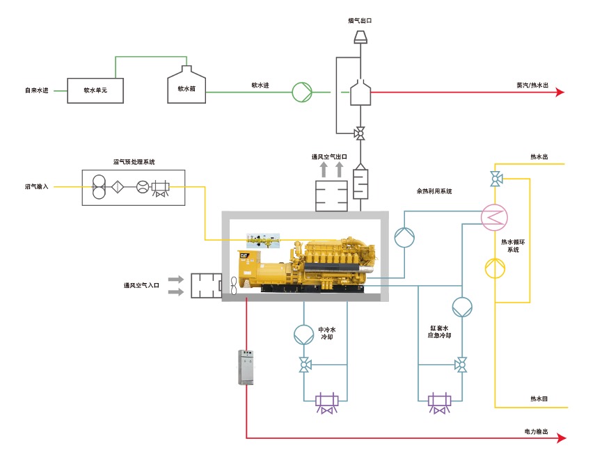 电能:发电机组通过沼气发电