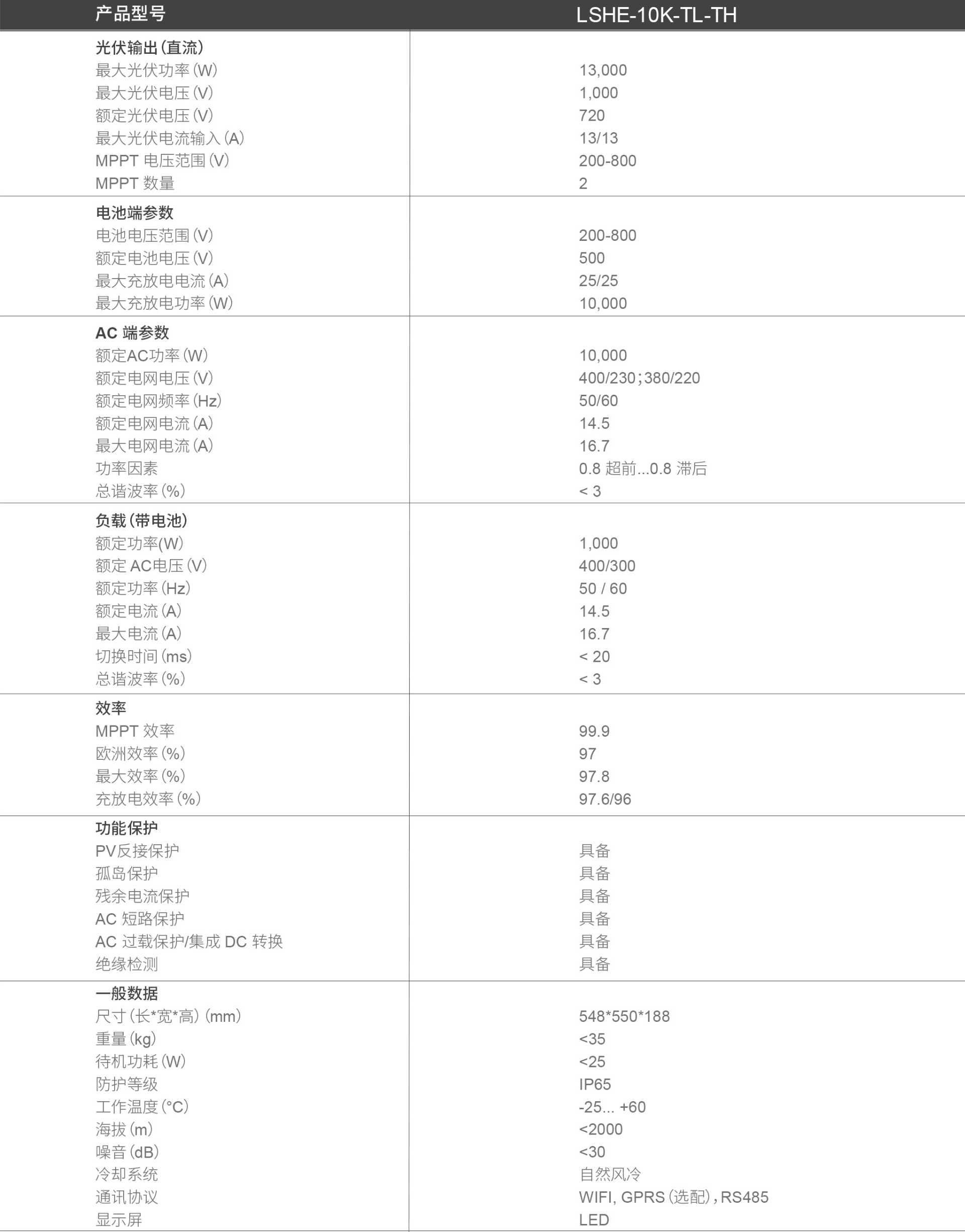 LSHE-10K-TL-TH 单相光储一体逆变器参数