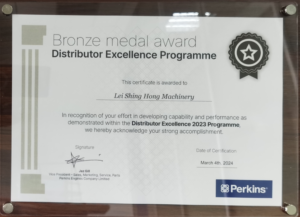 2024年,荣获珀金斯2023年全球卓越经销商奖牌。