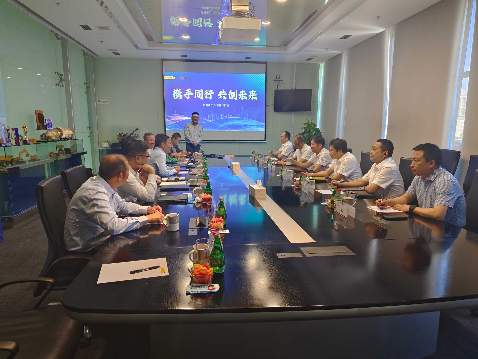参观结束,在随后的高层管理会议上,金鹰重工董事长张伟先生和kaiyun开云机械董事长傅耀生先生分别就公司的发展和规划做了重点介绍。kaiyun开云机械与金鹰重工已携手同行17年,强强联手,成为推动中国基建事业发展的一股强大力量。双方期待在下一个17年里继续风雨同舟,在祖国“一带一路”的建设洪流中,kaiyun开云将不遗余力,为金鹰重工的业务拓展保驾护航,再创辉煌。