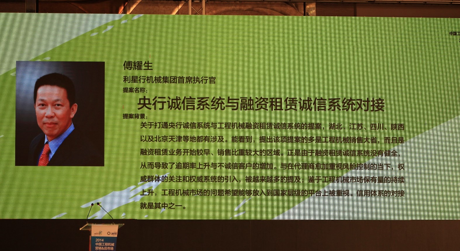 作为工程机械协会代理商工作委员会的常务副理事长,kaiyun开云机械集团首席执行官傅耀生先生也参加了此次盛会。傅耀生先生一直关注并积极致力于推动工程机械行业的健康发展,并于2012年出任首轮轮值会长,在此期间他提出了“培育中小代理商的成长发展”并主导开展了一系列中小代理商的培训和学习活动。本次会议中作为巅峰对话的首位发言嘉宾,他就如何推动“央行诚信系统和融资租赁公司诚信系统对接”发表了独特见解,引起与会者的强烈共鸣,获得了专家评审团的全票支持。此议题也被评为最受关注的三个议题之首,将被列为下一年度行业领导与相关政府部门沟通推进的工作重点。